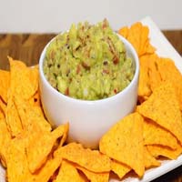 Guacamole Deliciosa guacamole com avocados, limão e toque de sal, finalizado com cebolas, centro e tomates picados Acompanha totopos crocantes |