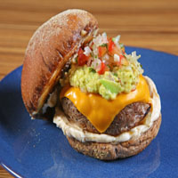 Hamburguer El Ranchito 150g de carne de costela bovina com queijo e maionese de coentro com toque de limão - abacate, cebola, tomate, jalapeños. Acompanha: Chips de batata à mexicana (com toque de limão e Tahine) |